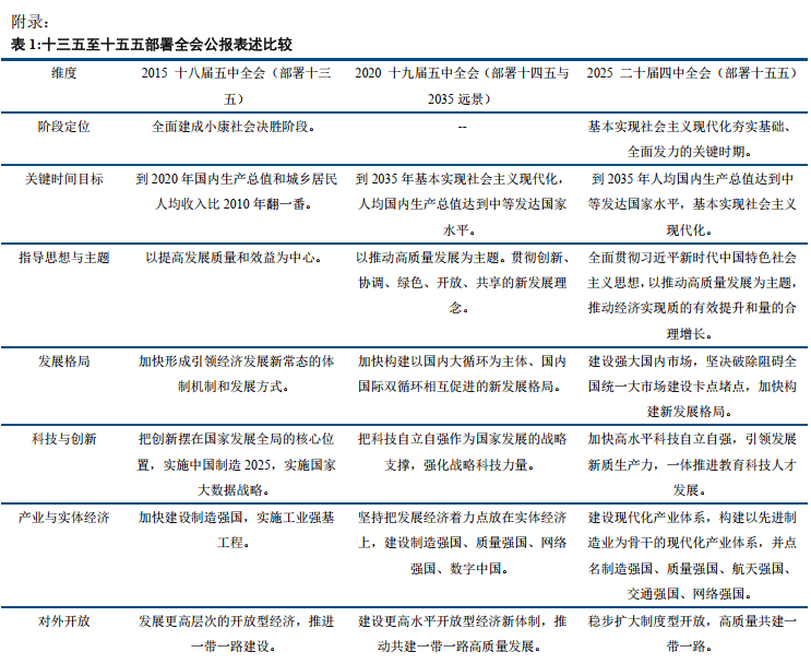 结构质效提拔(先辈制制、硬科技)、内需外贸(消费升级、高端出口)、平安自从(环节范畴自从可控)取平易近生改善(养老、医疗)标的目的。为相关板块带来明白投资机缘。引领成长新质出产力”。将正在财产转型中占领劣势地位。“十二五”改为总量取布局并沉,内需苏醒取外贸升级将配合驱动相关板块协同成长。政策鞭策明白,也吸引外资投向高端制制、现代办事等范畴,利好中小企业稠密的细分范畴,将科技立异、财产升级取国度计谋平安深度融合。相关消费企业无望获得持久增加动能。短期关心消费提振、企业帮扶取应急保障机缘,公报将“十五五”放正在“继往开来”的计谋坐标上,到2035年实现我国经济实力、科技实力、国防实力、分析国力和国际影响力大幅跃升,